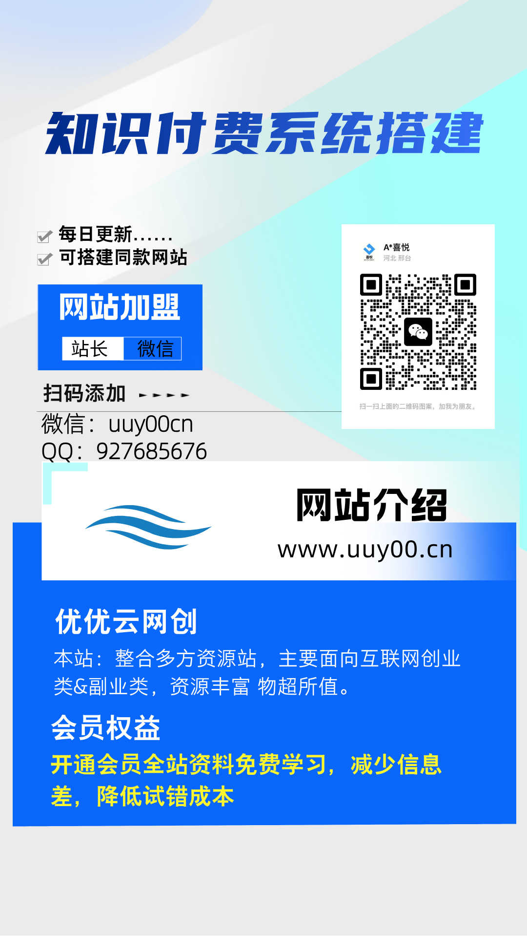 加盟XXX网创,加盟搭建同款知识付费资源网站,实现长期稳定被动收入~